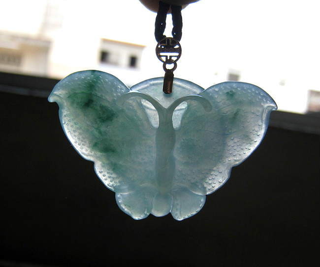描述:种质细腻,工艺精致,飘蓝花,左翅淡紫,无瑕疵和纹裂.