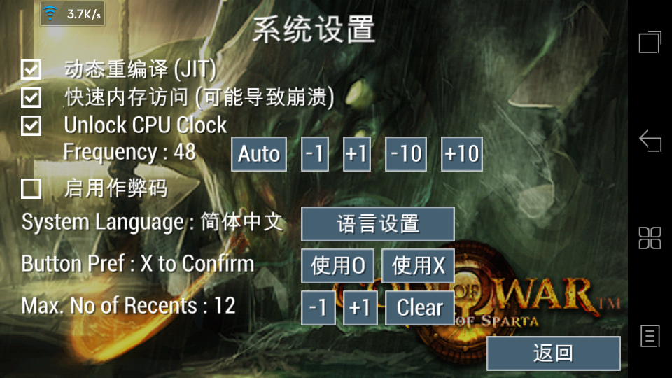 评测:战神(动作游戏)~机型:s899t~模拟器版本:0.8.1564(ps:不卡~但是动作慢)