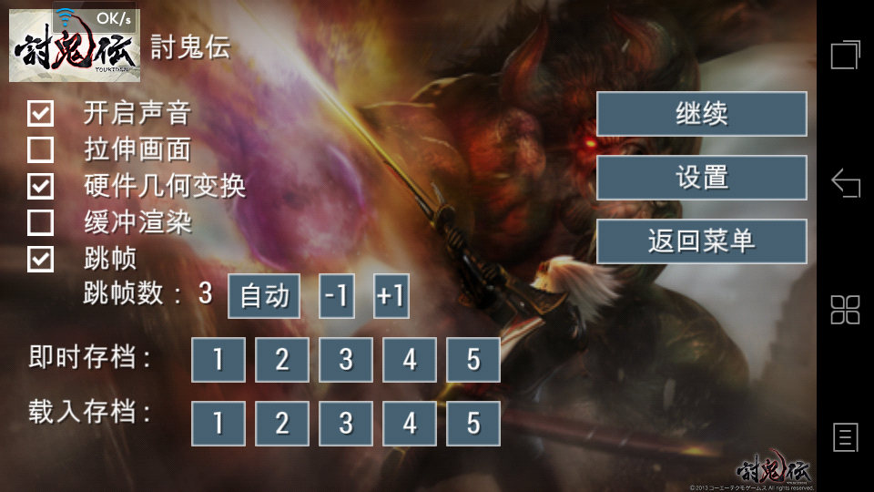 评测:讨鬼转(动作游戏)~机型:s899t~模拟器版本:0.8.1564(开始建人物是要开渲染不然看不见人~后面就可以关了)