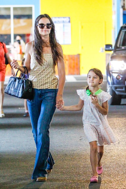 Katie Holmes holds her daughter Suri‘s hand while they leave a gym class on Monday afternoon (July 15) in New York City.