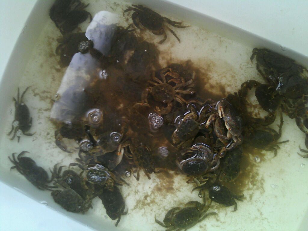 这在河边,螃蟹跟白捡的一样,回来卖螃蟹去,哈哈