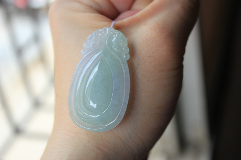 冰糯种浅紫罗兰飘花大福贝,水色好,完美无纹裂,2880元包A带证书,三天内无条件退换货。尺寸:51*39*6mm