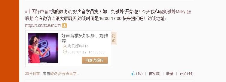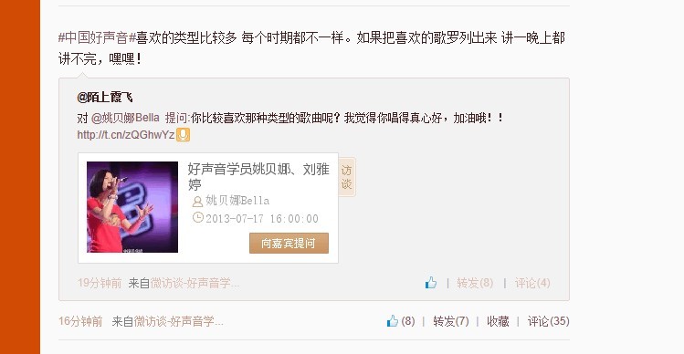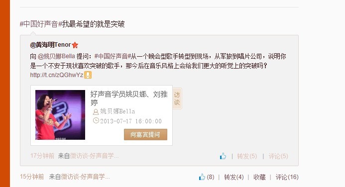 中国好声音微访谈~新浪微博【直播】
