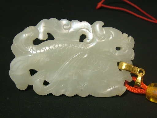 鳌龙佩是明清民间喜爱的造型,在科举时代有苦修鳌龙出头,一夕成名的心理激励作用. 此佩玉质雕工堪称一流,随佩挂有串老金环(内环有金印记)和老琥珀.是老一辈讲究身份地位的挂佩