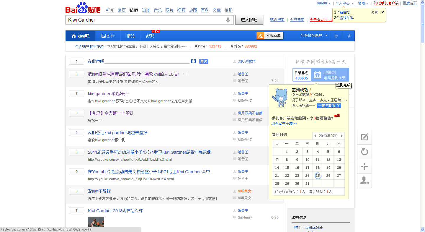 我刚加入这个贴吧 就是第二个签到的 这个贴吧 的人好少