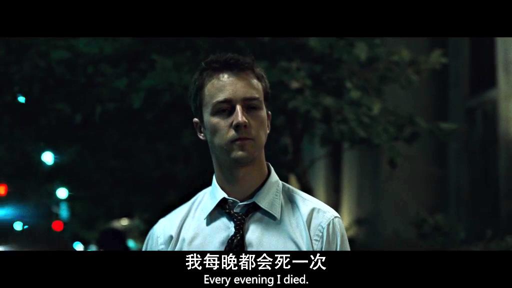 I could’t sleep. I could’t sleep. Everyting’s far way. With insomnia, nothing’s real. Everyting’s a copy of a copy of a copy.我无法入睡。失眠症让我感受不到真实,一切都很虚幻,事情都成了相同的拷贝。