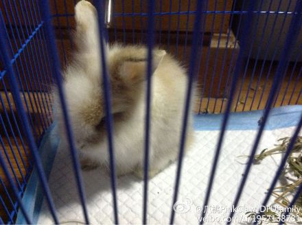 是个安静的小兔兔。。刚来家里把它放出来玩的时候还会跳跃。。后面老是郁闷的把它关在笼子里= =粗来也不是很高兴了,现在也不跳了。。。打算给他买个大点的笼子能在里面舒舒服服的~~~