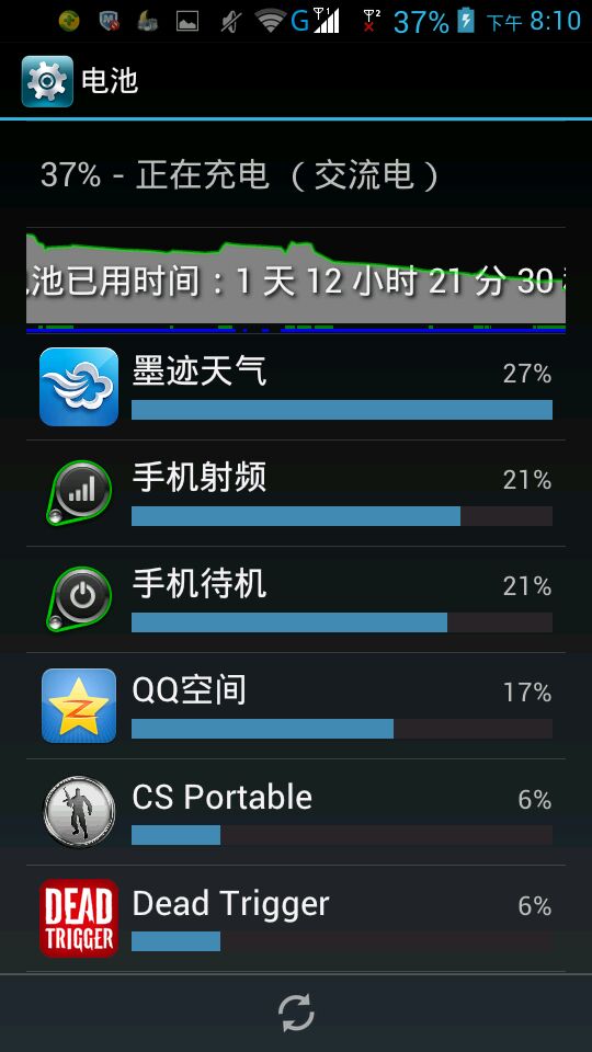 而且上图中这次充电时间算长的但没增加太多。下图是电量消耗,手机射频是什么?
