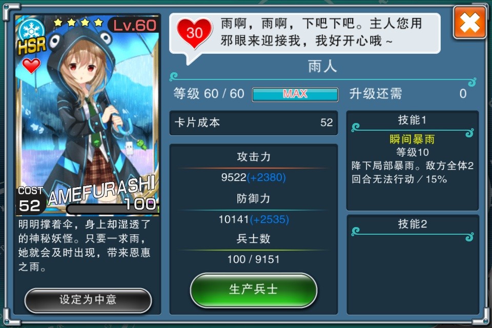 想当年雨女在大帝国里可是关键性强卡。。。。甚至好几个BOSS不带她根本不可能打得过