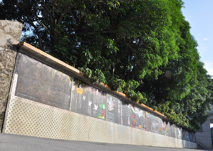 从教学楼的左后方下来就是澄碧校区的板报栏。