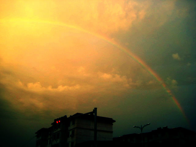 这个彩虹就是之前那场大雨和阳光的结晶。阳光总在风雨后,请相信有彩虹。
