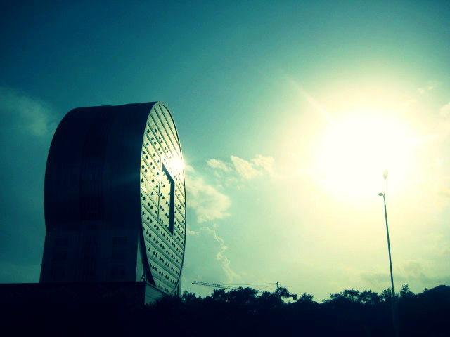 炎热下午之后的金融大厦,和顶着太阳的路灯在一起,总是很和谐。