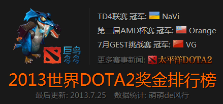 【2013世界DOTA2奖金排行榜】截至TI3前 2013.7.25