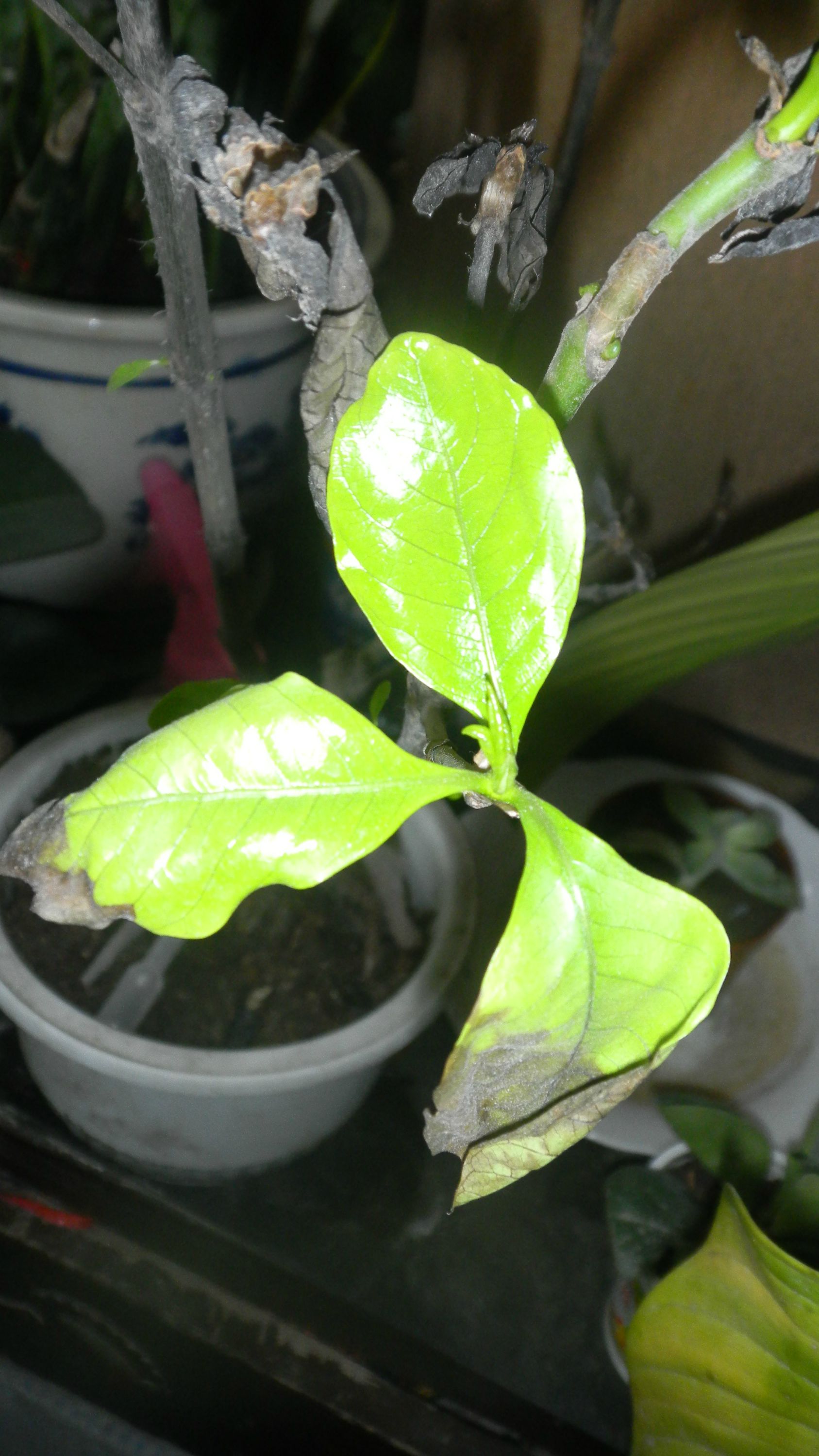 我是北方的,都说北方养栀子花很难,这回可体验到了,4月份买了一盆,换盆后叶子全掉了,这也罢了,每次新叶出来后没多久,就变黑了,不知道为啥,大家救救她吧,先谢谢啦
