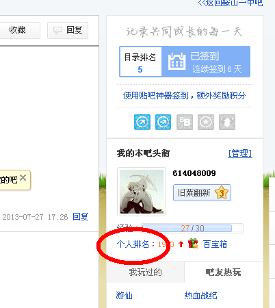 咋查在贴吧的名次啊?