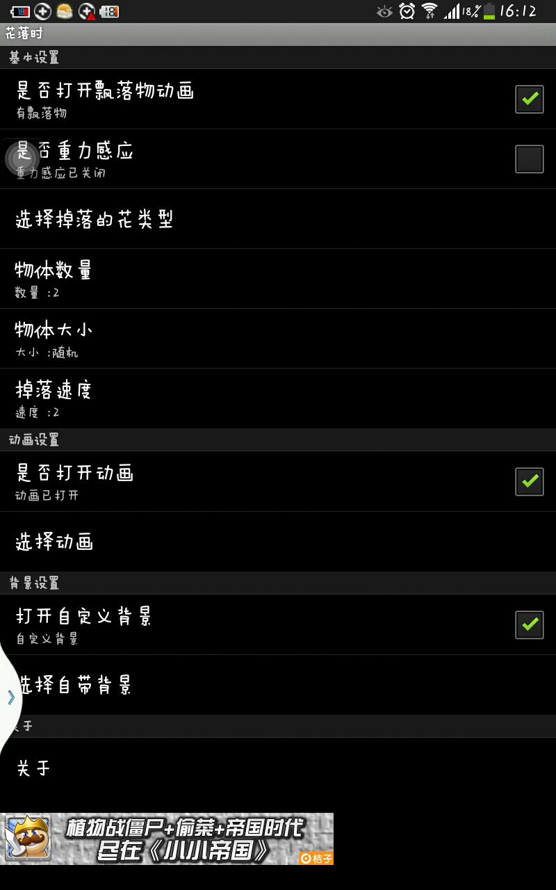 下面那款樱之华还是花钱买的呢!不过没有后悔,觉得非常好看。后来过了一段时间就百度了一下这个动态壁纸的制作团队情况,发现还有2号动态壁纸,也就是我现在用的这个,本来在三星APP上是要6块多钱下载的,有百度搞了个免费的只有眼睛会眨,几朵花会掉,其他的花的颜色,掉落类型,自定义背景,女孩摇头,灯柱摇晃等等的都没有,憋得我去下载他的推送软件获取几分来激活这些动态效果,一激活我就把所有的软件都给卸载了,省着在三星下载的钱了。哈哈。