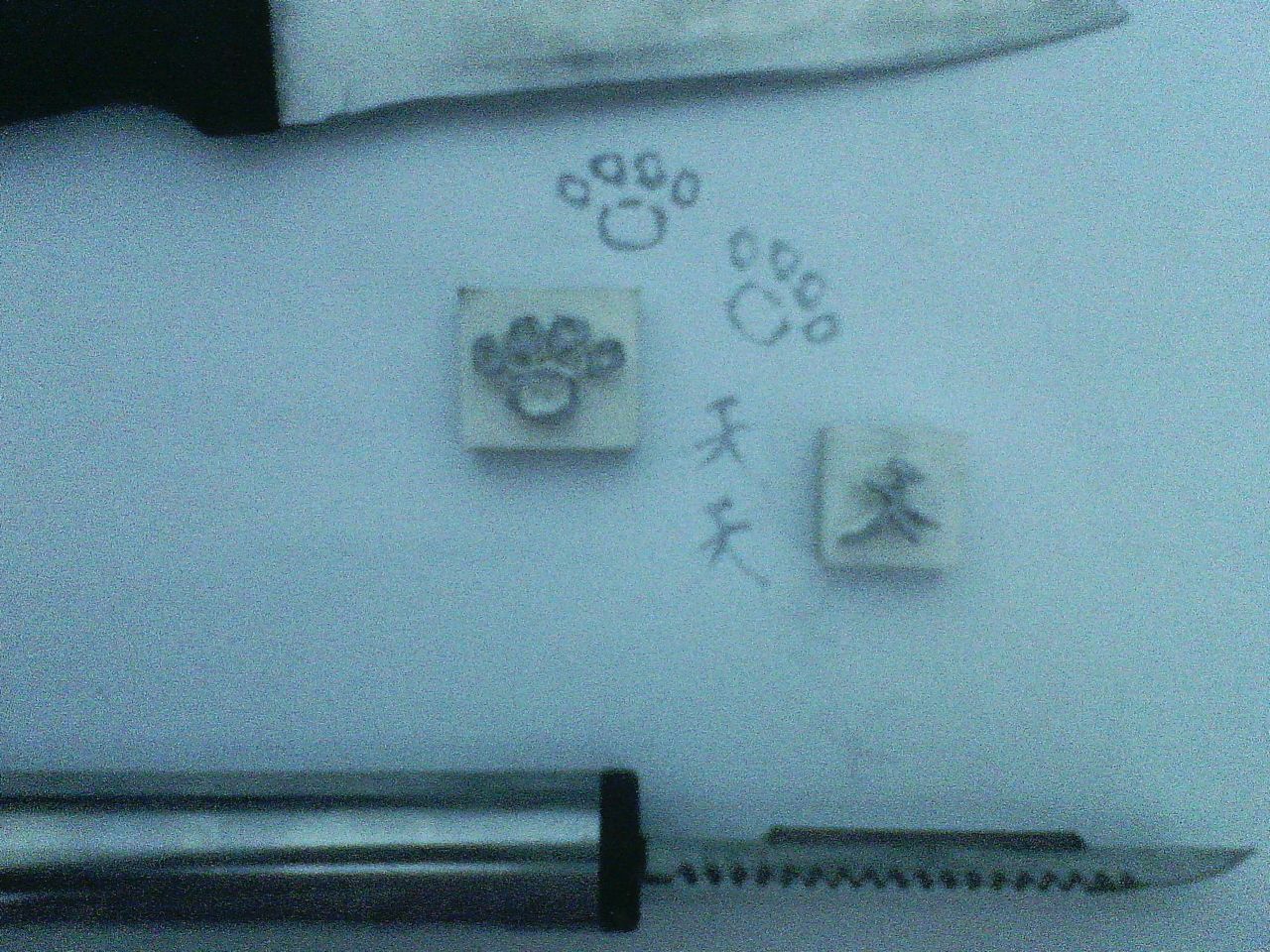 没有别的东西用→ →刀片太软我都能徒手撕了它……菜刀不敢用,美术废表示家里从来没有美工刀,所以只能用水果刀