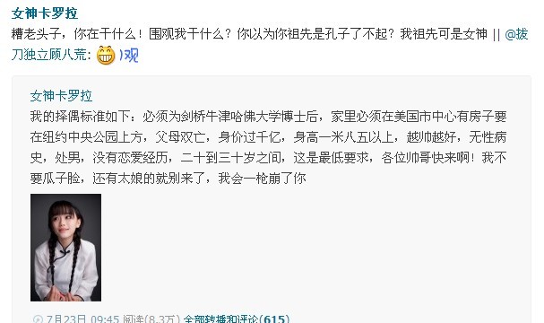 她的聘夫标准,哪个大神满足的。花痴小说看多了吧