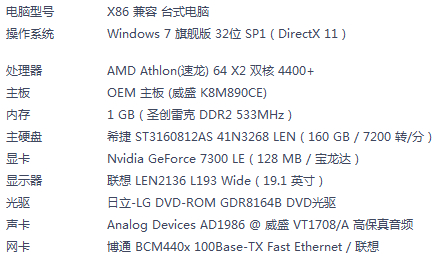 内存在加个2G,显卡换成9600G,系统换成WINDOWS7 32