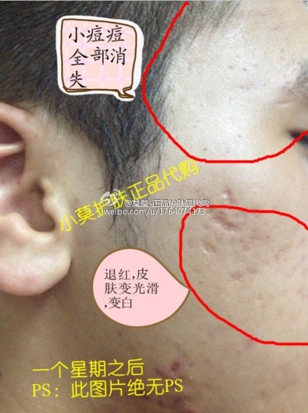 祛痘霜真是超无敌的,才用一个星期就有这么好的效果,香港一家中药店秘制,纯天然中药成份,适合任何肤质,就算没痘痘美白效果也超神奇的,再搭配氨基酸洁面霜效果更佳,拿亲表弟做试验,不好不推荐,看图说话。