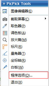 2) PicPick会在右下角的任务档时显示,右击,出现图4.2的界面,点“程序选项”进行设置。
