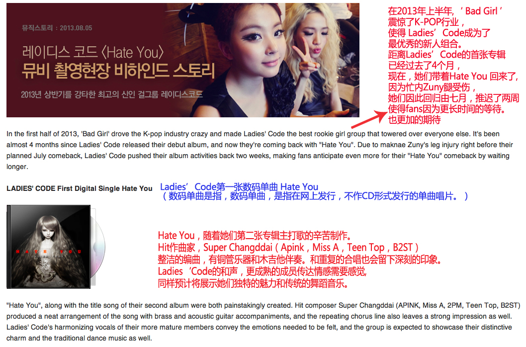 Ladies'Code第一张数码单曲 Hate You