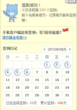 今天是本贴吧第520个签到