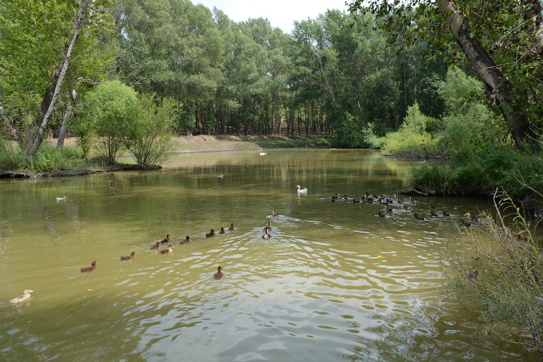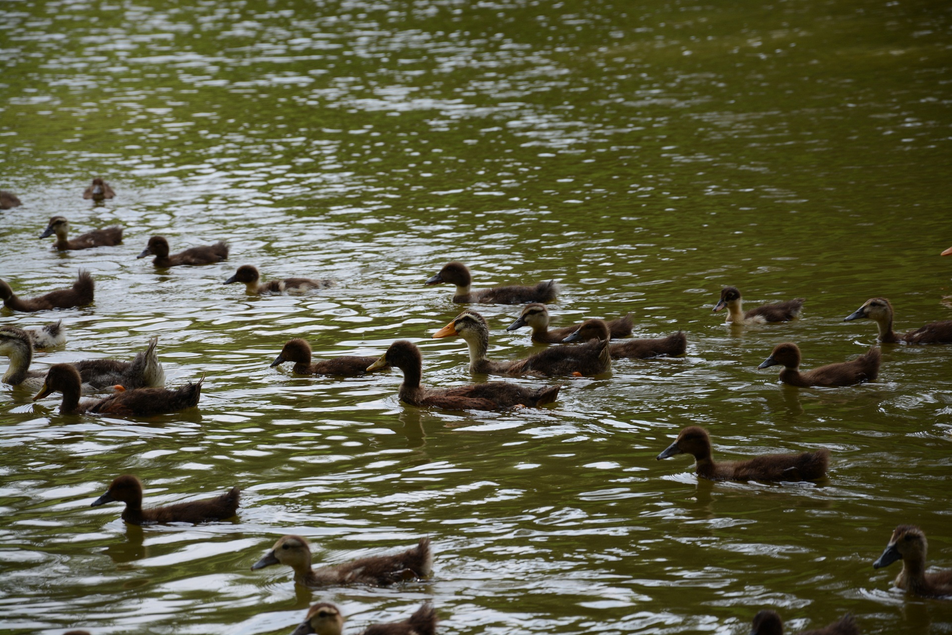 两群小鸭子,游向一直白色的大鸭子这张,改如何构图?