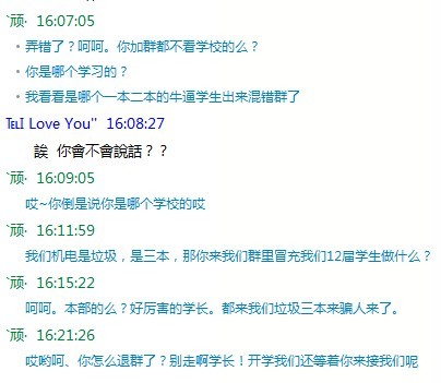 这货被识破过后,态度立马转变。从他语气里透露了对我们学校是三本的不屑。我就呵呵了,我们学校是三本,你来我们学校的新生群做什么?