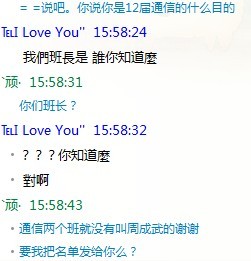 这货开始问我们专业两个班的班长姓名了。呵呵。装的真像。