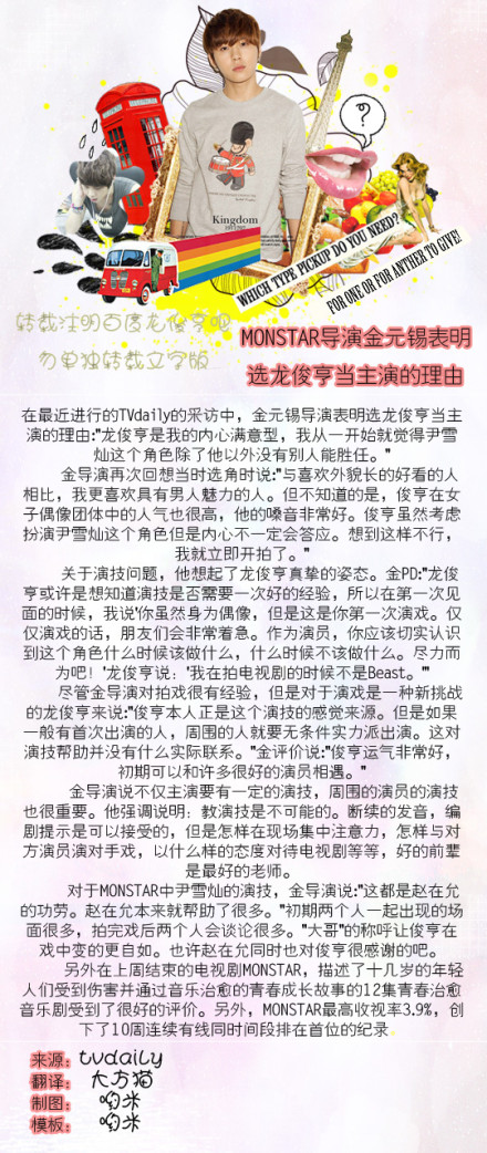 ◆MONSTAR-08.09-新闻◇MONSTAR导演金元锡表明选龙俊亨当主演的…