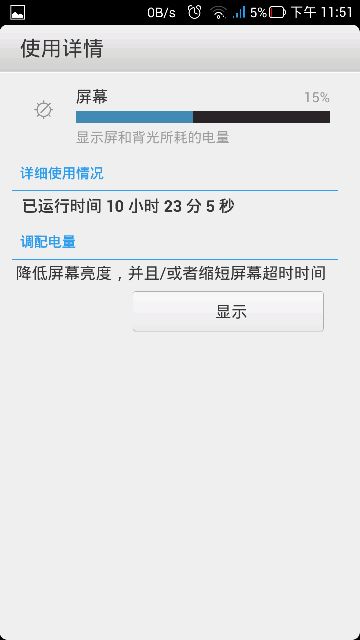 使用情况大概是这样:非省电模式,亮度最低或者20%以内,wifi刷贴吧5小时,其中三个小时白色背景,两个小时夜间模式;一个小时布卡漫画;两小时黑屏音乐播放,待机时间一天,其中八个小时飞行模式。