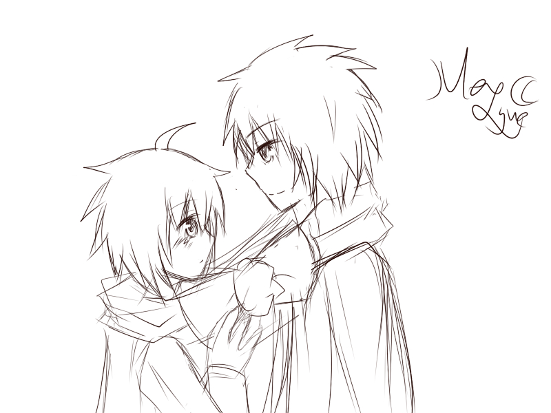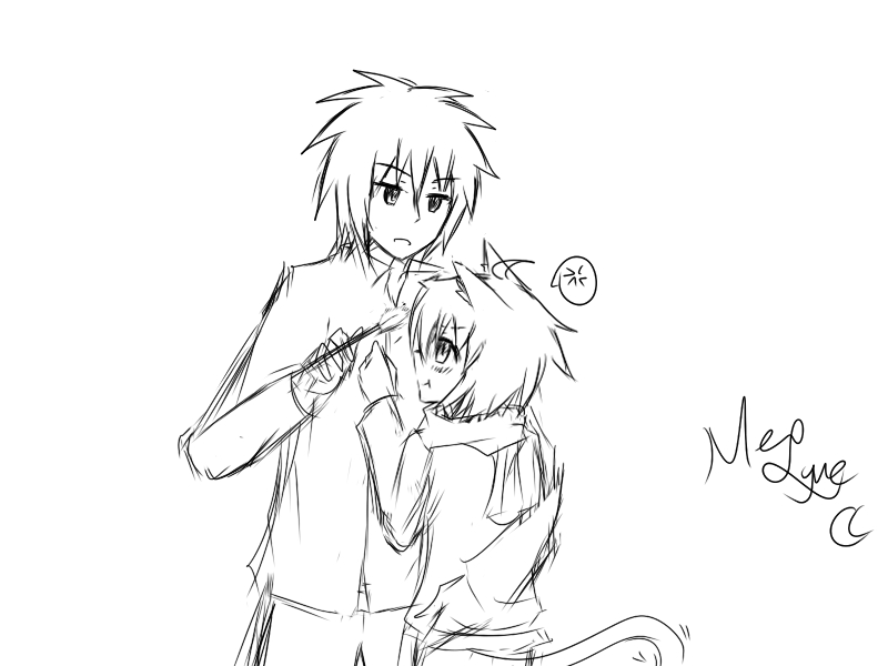 正待在书房看著书的男子听到呼喊声立刻抬起头,看到男孩冲到书房,露出浅浅的微笑,眼中尽是对著爱人的宠溺,那俊美帅气的脸庞,还有那头给人神秘感觉的墨蓝色刺猬头给人留下深刻的印象,本来总是一脸冰冷的脸上却因为眼前的男孩,而时常露出微笑