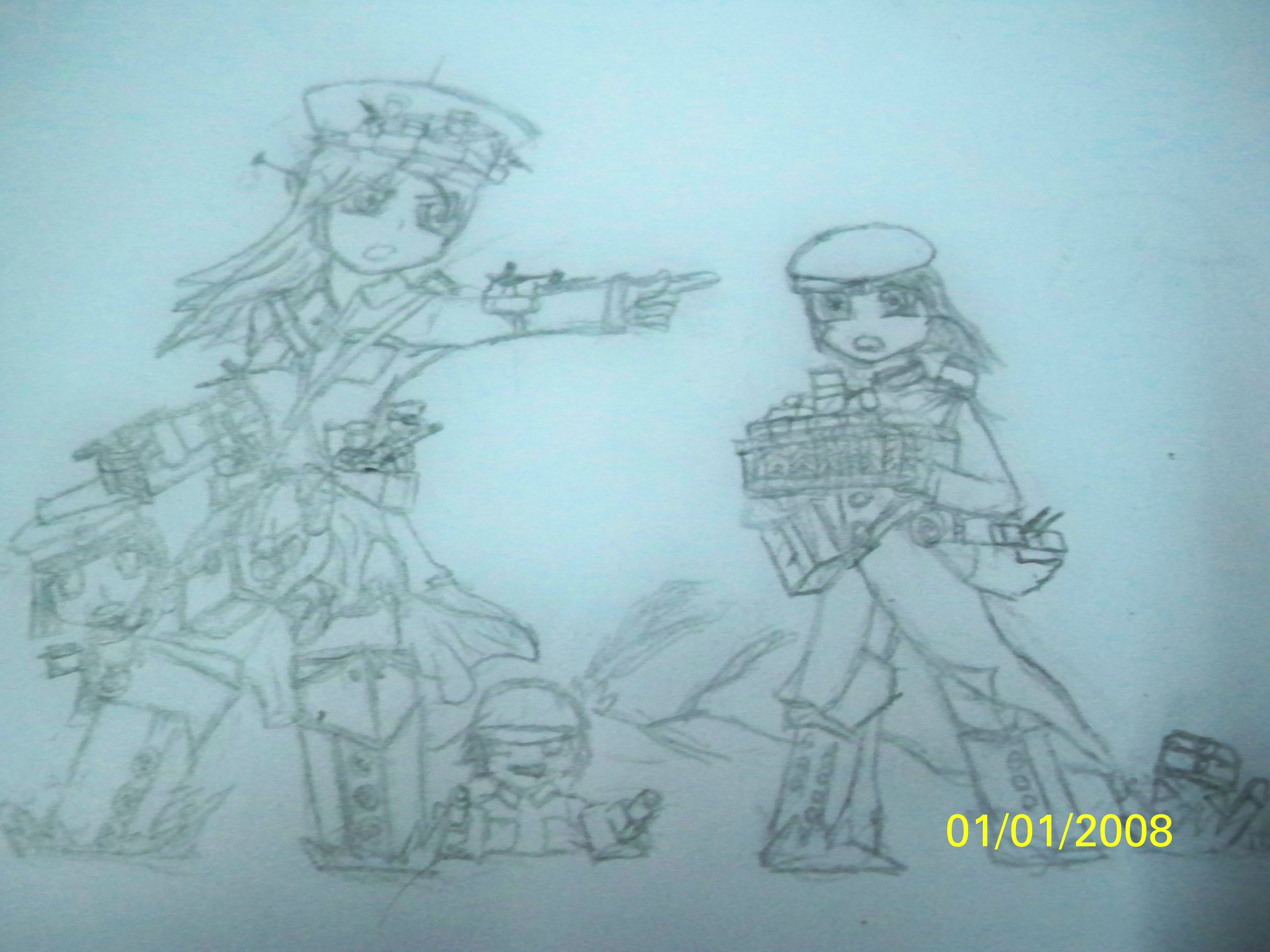 同春右手握的是设计成拐【参见【零轨】和【碧轨】中城管的武器。。。】的鱼雷管 ,历史图片太少,只能边猜边画,该舰原本是东北海军的“同安”舰,属于“建康”级,在青岛防御战中完成布雷后自沉阻塞航道,后被日军打捞,交给汪伪海军使用,装备2门75高炮,4门47炮和3挺马克辛,以及2根鱼雷管