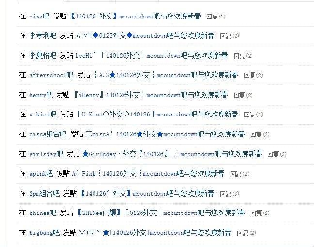 外交吧:东方神起吧 tiara组合吧 神话吧 b1a4吧 infinite吧 2ne1吧