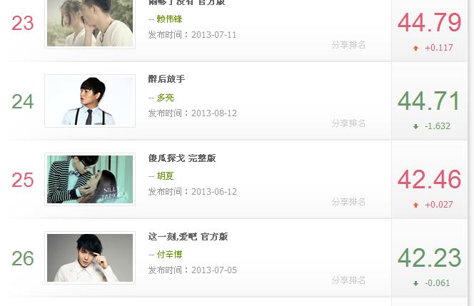 榜单: http://vchart.yinyuetai.com/vchart/v