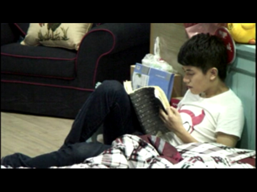 他好喜欢看书呀