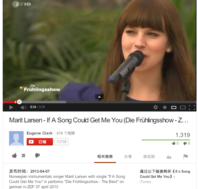 关于这个德国电视二台新春秀的现场,我也疑惑了很久,上油管查过以后感觉应该是Marit上过两年的节目(2010,2013)