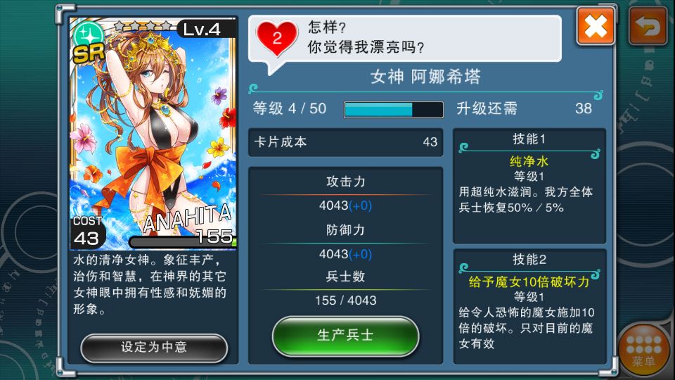 当时刚终抽到2张的时候还特兴奋,心想我终于有SR奶了。用了之后嘛