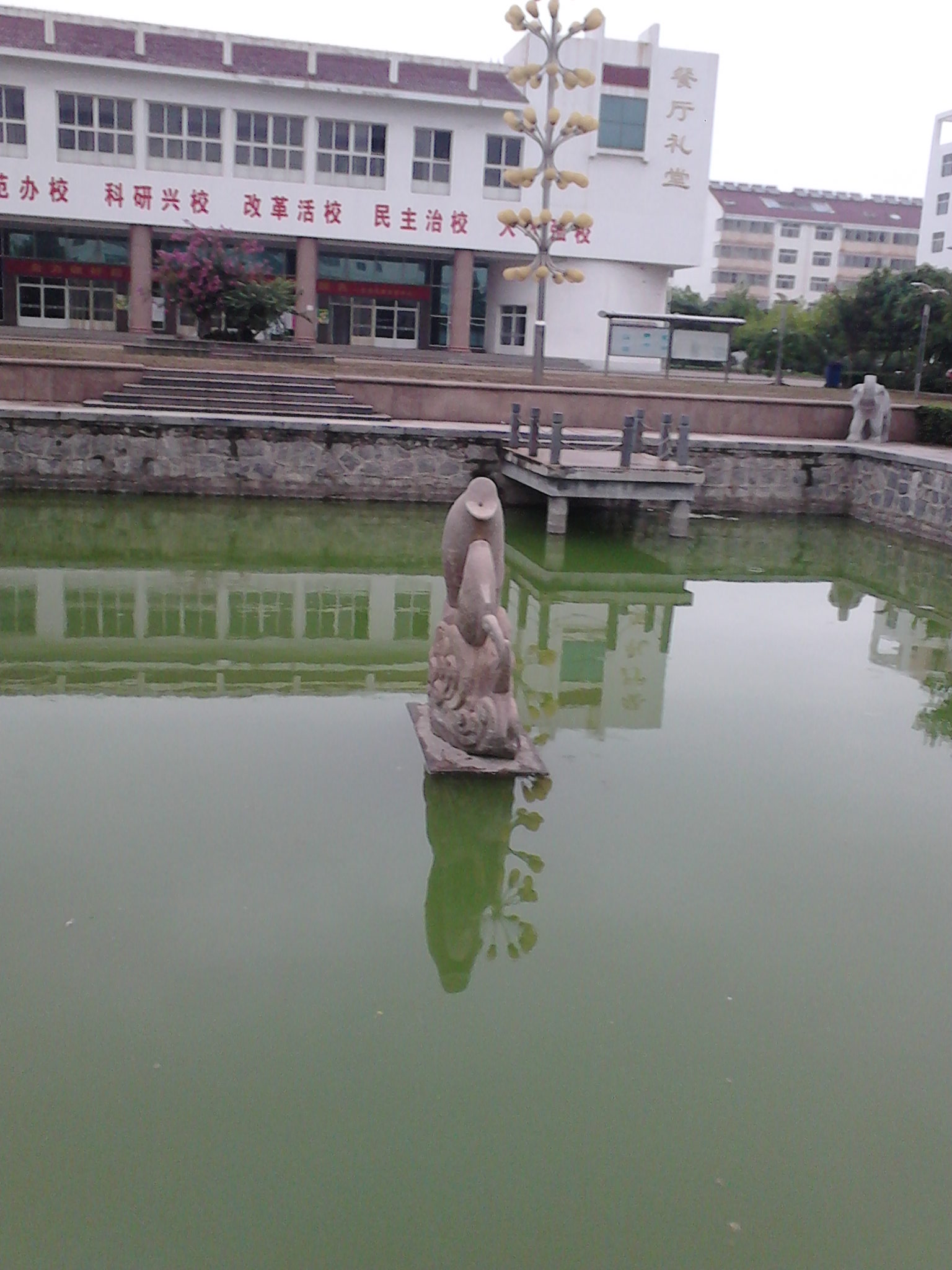 据说这个水池子上面那堵墙是可以当做瀑布墙的,但是很遗憾,高中三年我都没有见过瀑布流水。