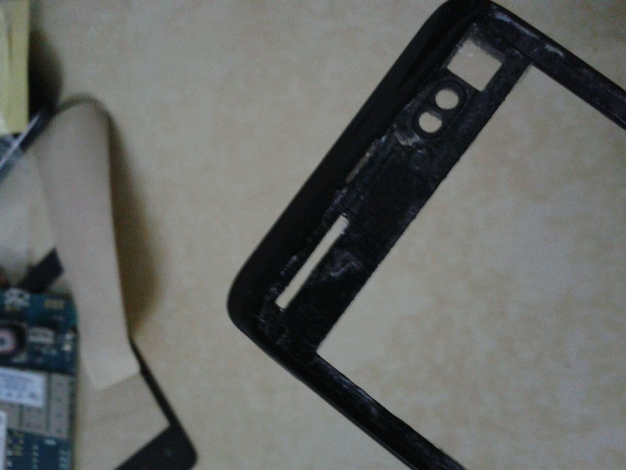 原装机里面在外屏和内屏间有双面胶前几天差一点排线就会挂的