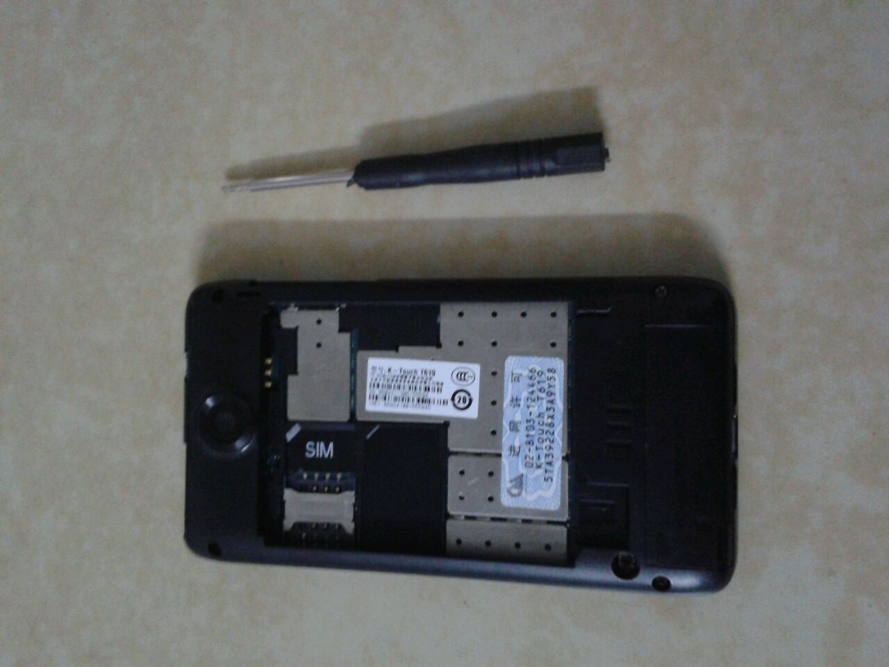 教程开始,先打开后盖,扣电池,sim卡,内存卡,当然还有sim卡2槽那块东西(这个要扣掉之后才可以把螺丝去掉),然后用螺丝刀把4个螺丝去掉,在边上把后壳扣开(慢慢来,挺容易的)