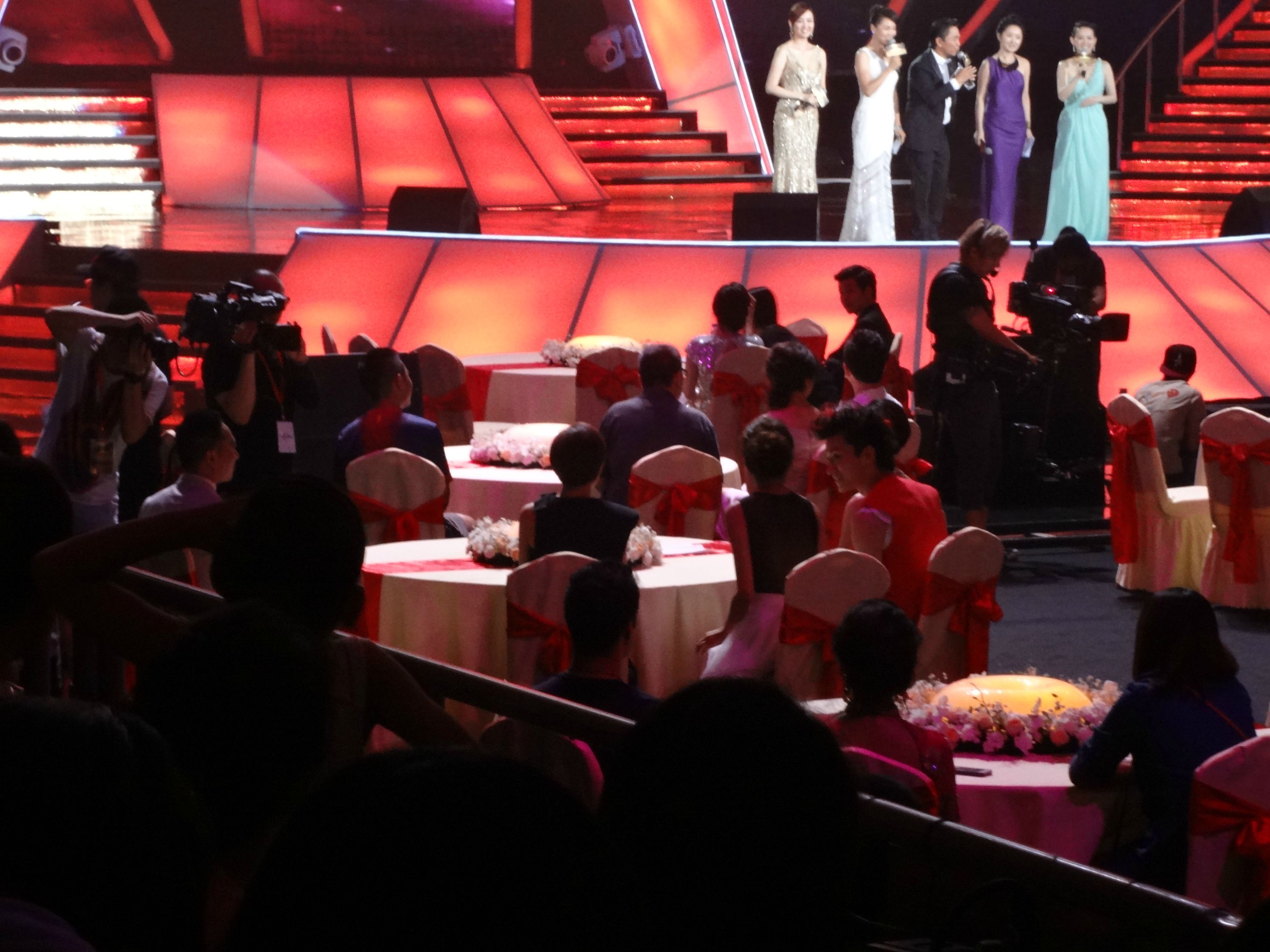 ps插一句,刚才忘说了,这是丫丫第一个坐的位置,接下来还会变化,这个是舞台左边第二桌貌似,上台的左侧嘉宾都从附近走过~