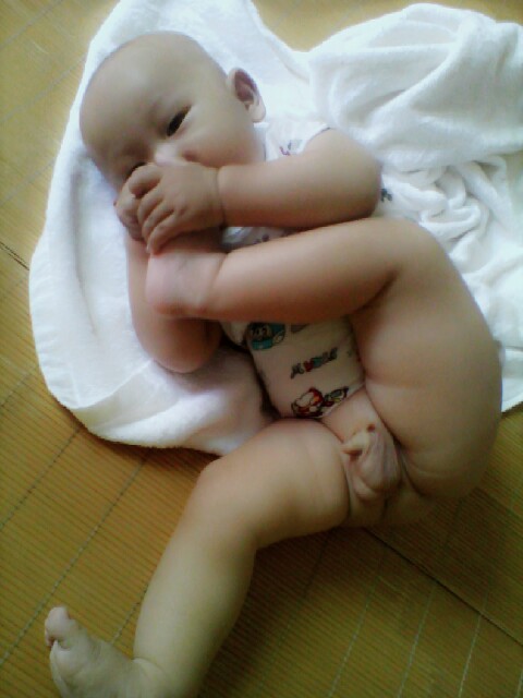 三个月了,每天脚抬的高高的但还不知道吃也不会用手抓住,唯一抓住的就是盖在她身上的尿布,一不留神就抓住啃起来