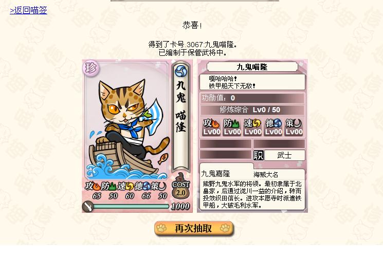 留着别卖!这猫满气量80五轮练满,贴小豆袋+鬼若子+甲州,然后点“解雇武将”,据说能出限量版隐藏属性猫!