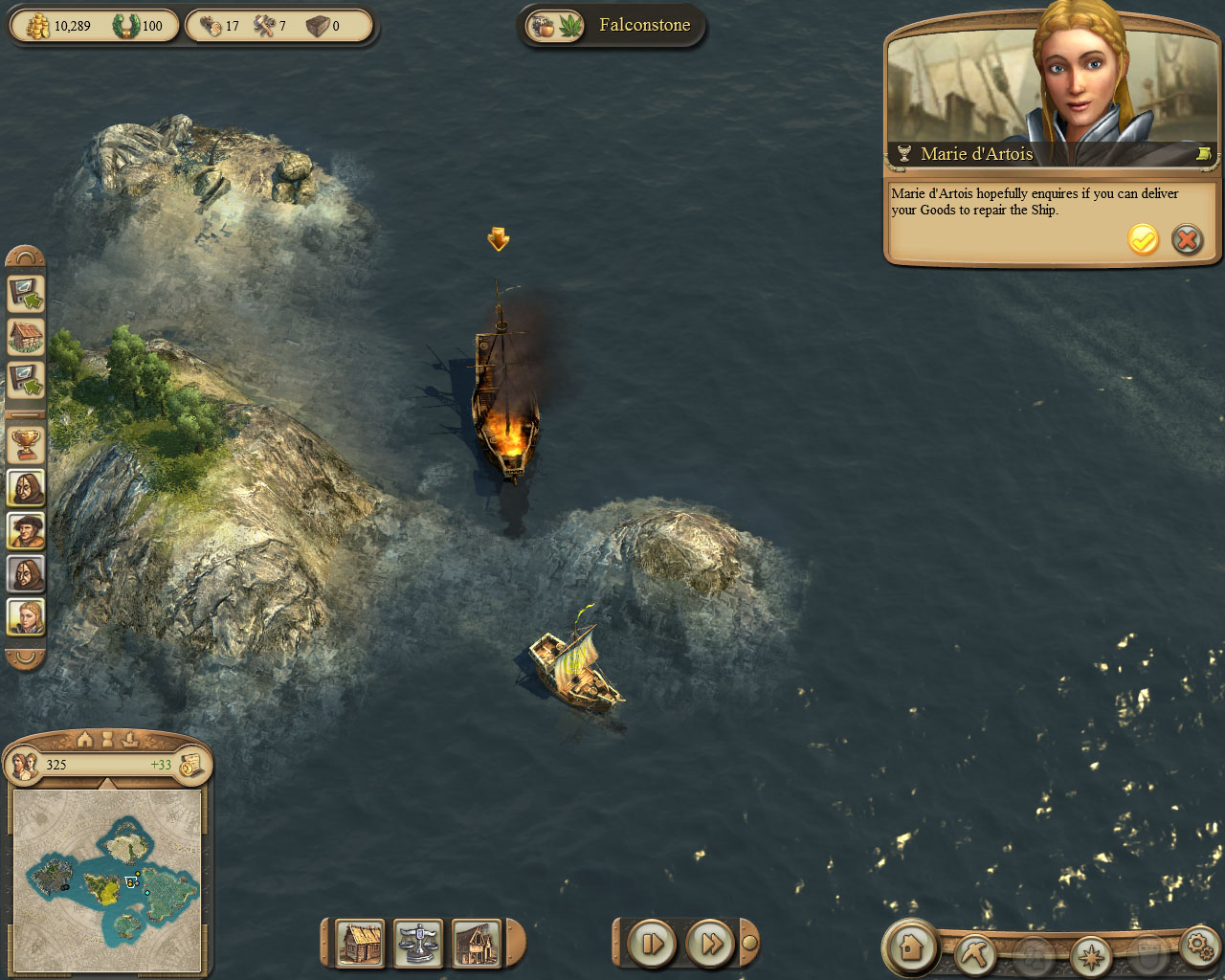 注意:完成此任务之后,最好让船只回到自己的港口,以便完成其他的任务。