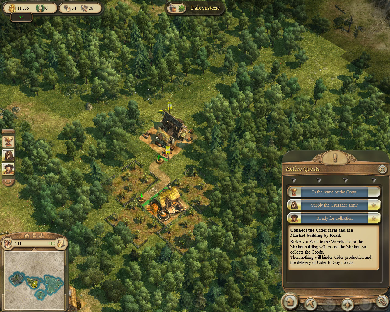 注意:你会发现你的居民开始消费饮料,导致你没有足够的富余用来装上船只。如果发生这样的情况,你可以选择停止供应饮料。鼠标左击任意的民居,在屏幕右侧的需求栏中选择饮料,然后点击苹果汁的图表,即可停止供应苹果汁。