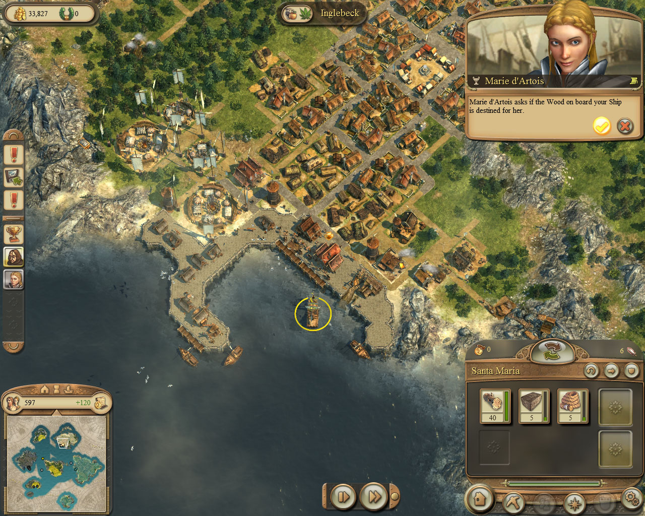 鼠标左击玛丽·阿图瓦的港口仓库,即可接收此任务。玛丽请求你为她的骑士们提供10吨麻衣。不要急着建设4个小型储物室,先运送这些物资。如果你先建设小型储物室,那么会判定为完成了下一个主线任务,这将导致你错过这个及下一个支线任务。有可能的话,可以顺便带上40吨木材,接下来的任务会用到。