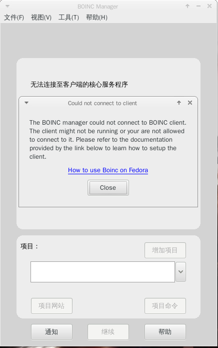 fedora 19运行BOINC提示”无法连接至客户端核心服务程序“