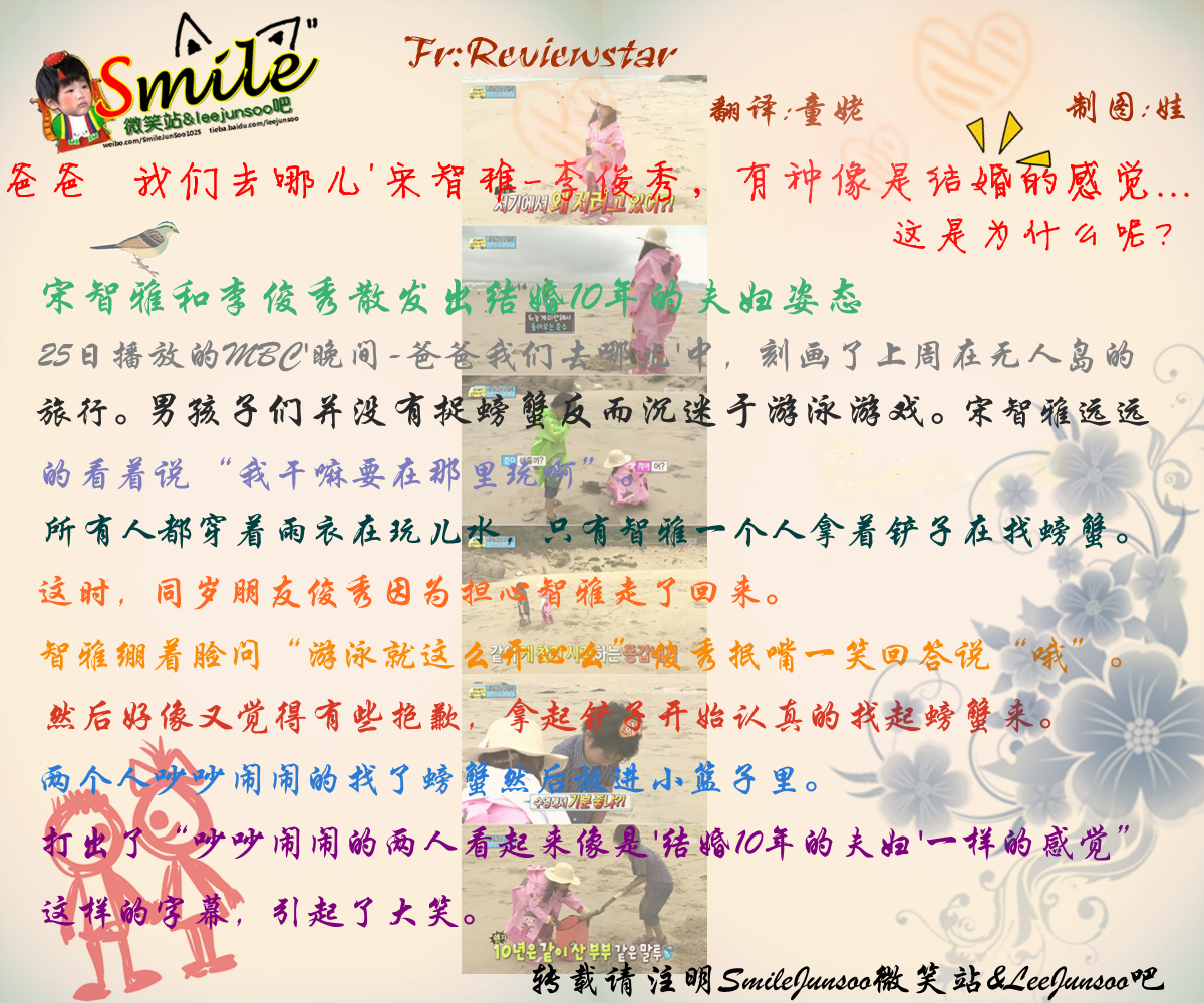 '爸爸 我们去哪儿'宋智雅-李俊秀,有种像是结婚10年的夫妇一样的感觉...这是为什么呢?